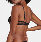 The Aubade Danse Demi Bra combines elegant floral lace with a flattering half-cup design, offering gentle lift through its non-moulded, vertically seamed cups. Delicate satin bows adorn the center and front straps, adding a touch of luxury. Adjustable straps and a secure hook-and-eye closure ensure a comfortable, customizable fit for everyday sophistication.