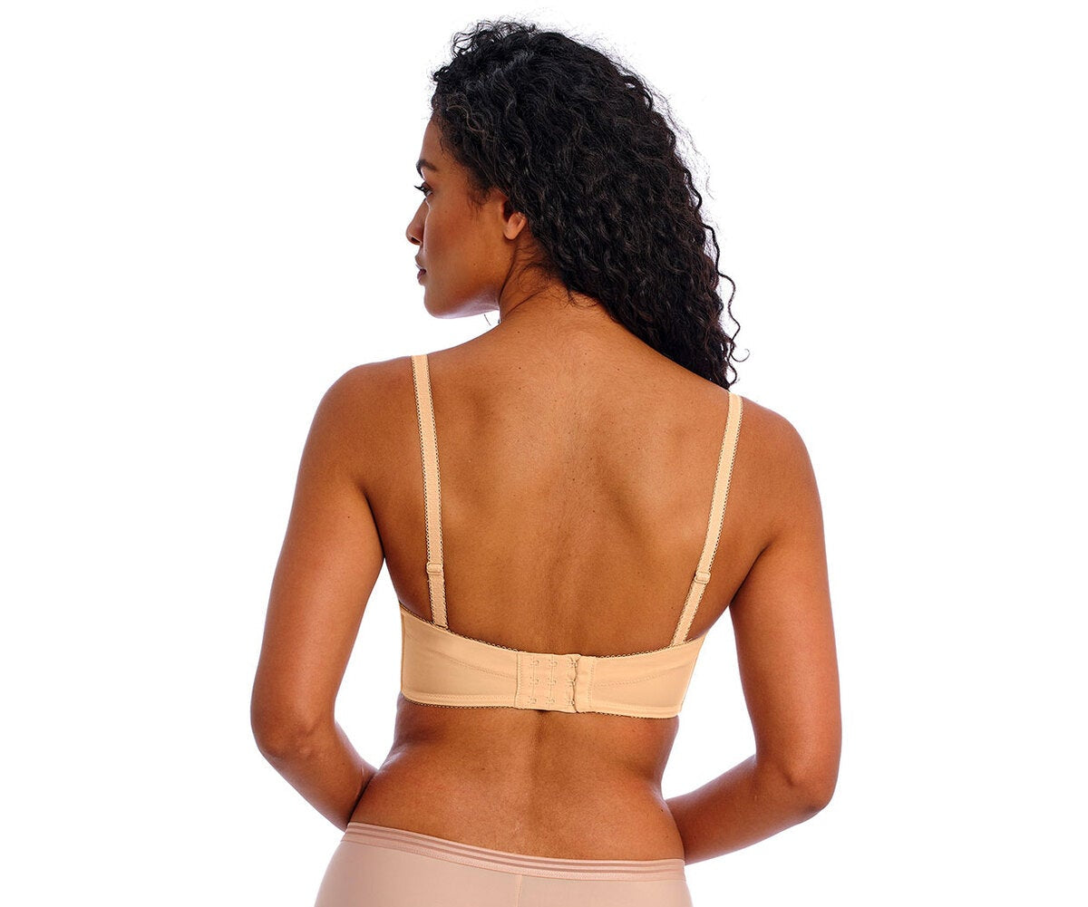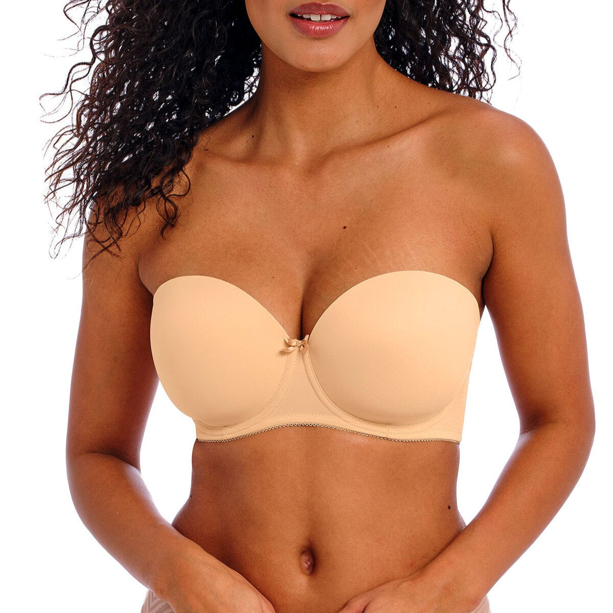 The Freya Deco Strapless Moulded Bra blends seamless design with luxurious comfort. Its totally seam-free cups lie smoothly under close-fitting clothes, while the plunging neckline beautifully enhances your cleavage. Made from ultra-soft fabric, it feels gentle against the skin, and gripper elastic ensures secure support and lasting fit. With detachable straps, this bra offers versatile wear for any occasion, combining feminine elegance with modern fashion.