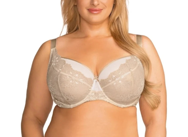 The Milagro Full Cup Bra combines refined elegance with everyday comfort. Crafted in Poland, it features soft tulle cups layered over an ecru base and delicately adorned with beige lace for a romantic touch. Vertical and angled seams sculpt and lift naturally, while underwires provide reliable support. A double-layer mesh band adds structure and comfort without side boning. Adjustable-width straps and a three-stage hook closure ensure a perfect, personalized fit. This bra is a graceful, luxurious choice for those seeking both style and support.