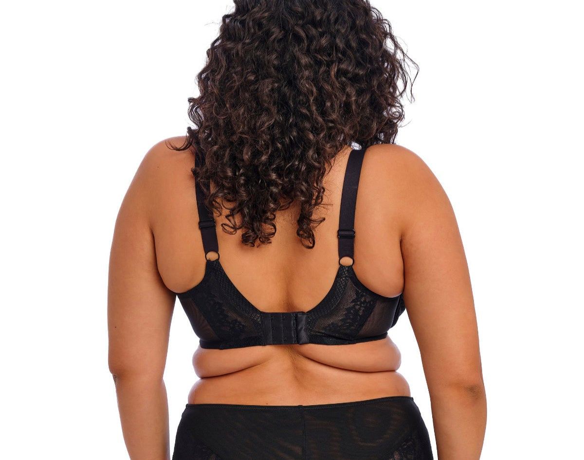 Seamless spacer cups feature smooth lace side panels that provide elegant support. The ultra-light, breathable fabric ensures comfort while maintaining excellent support throughout the day. A tall chimney back, adorned with delicate lace and hidden elastics, offers a refined back-smoothing effect, combining feminine style with luxurious comfort.