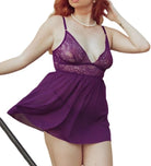 Get ready to feel playful and sexy with our Mini Slip and G-String Set! Adorned with lace trimmed cups and stretch mesh lace, this set is as comfortable as it is stylish. Adjustable straps ensure the perfect fit, while the rich purple color adds a touch of classic seduction. Comes with a matching g - string panty. (Don't miss the chance to spice up your lingerie collection!)