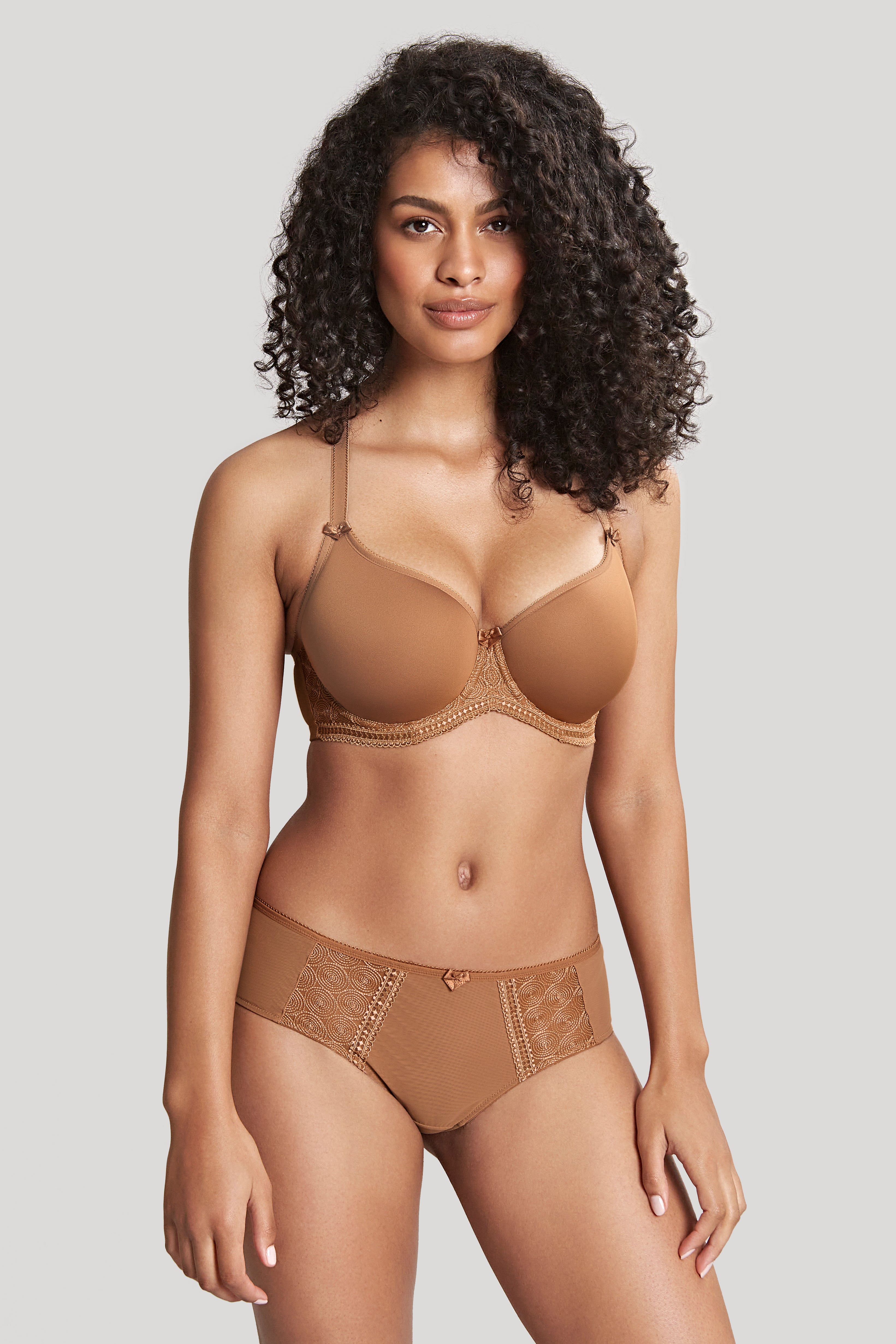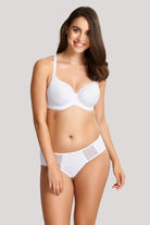 The Cari Moulded Spacer T-Shirt Bra offers a touch of indulgence to your everyday lingerie collection. Its premium Spacer foam and detailed Swiss embroidery provide a lightweight and breathable fit. The power mesh wings inside the cups and adjustable straps ensure a comfortable and secure fit, while the J-Hooks allow for versatile styling. Luxurious and functional, this bra is a perfect foundation for a smooth look.