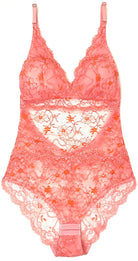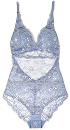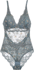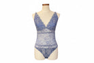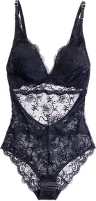 The Samantha Chang sheer lace bodysuit has a fitted silhouette and deep plunge neckline for a bold, confident look. Built-up front straps and mesh-lined bust provide essential support, while the elongated torso ensures proper coverage. Adjustable hook-and-eye closures at the back and crotch offer customizable fit, paired with soft cotton lining for comfort. Adjustable straps adapt to your frame. Hand wash to preserve the delicate lace construction.