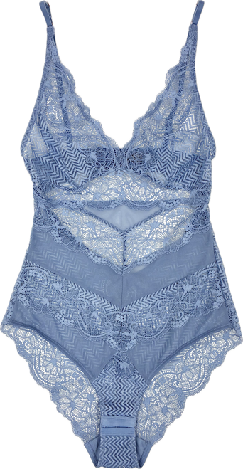 Experience the ultimate luxury of the Flaunt Chevron Bodysuit by Samantha Chang, perfect for your first - or only - layer. Crafted with soft, high-quality lace, this bodysuit offers moderate support without any pesky underwire. Complete with a 100% cotton gusset with adjustable closure, this feminine piece is surprisingly comfortable!