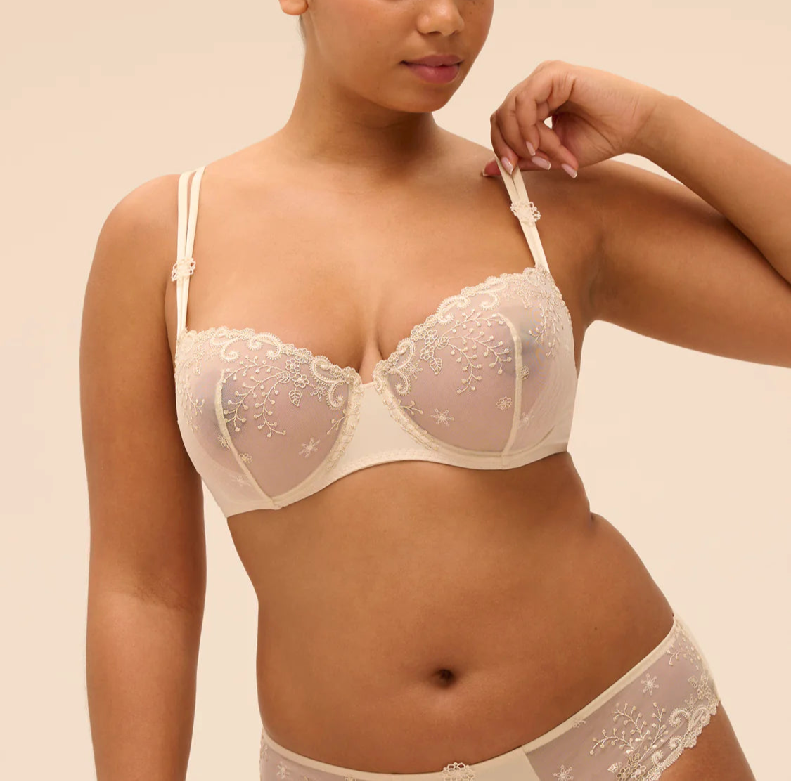 A fan favorite, the Delice Demi bra features beautiful, delicate embroidered cups and double straps.