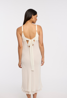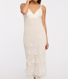 Effortlessly elegant, the Saint Tropez Gown will make you feel like a true goddess. Made of luxurious ivory chiffon, it features adjustable straps for a perfect fit and a delicate tie back detail. The stunning floral applique adds a touch of romance to this timeless piece.