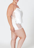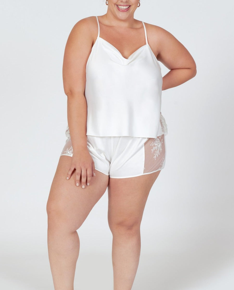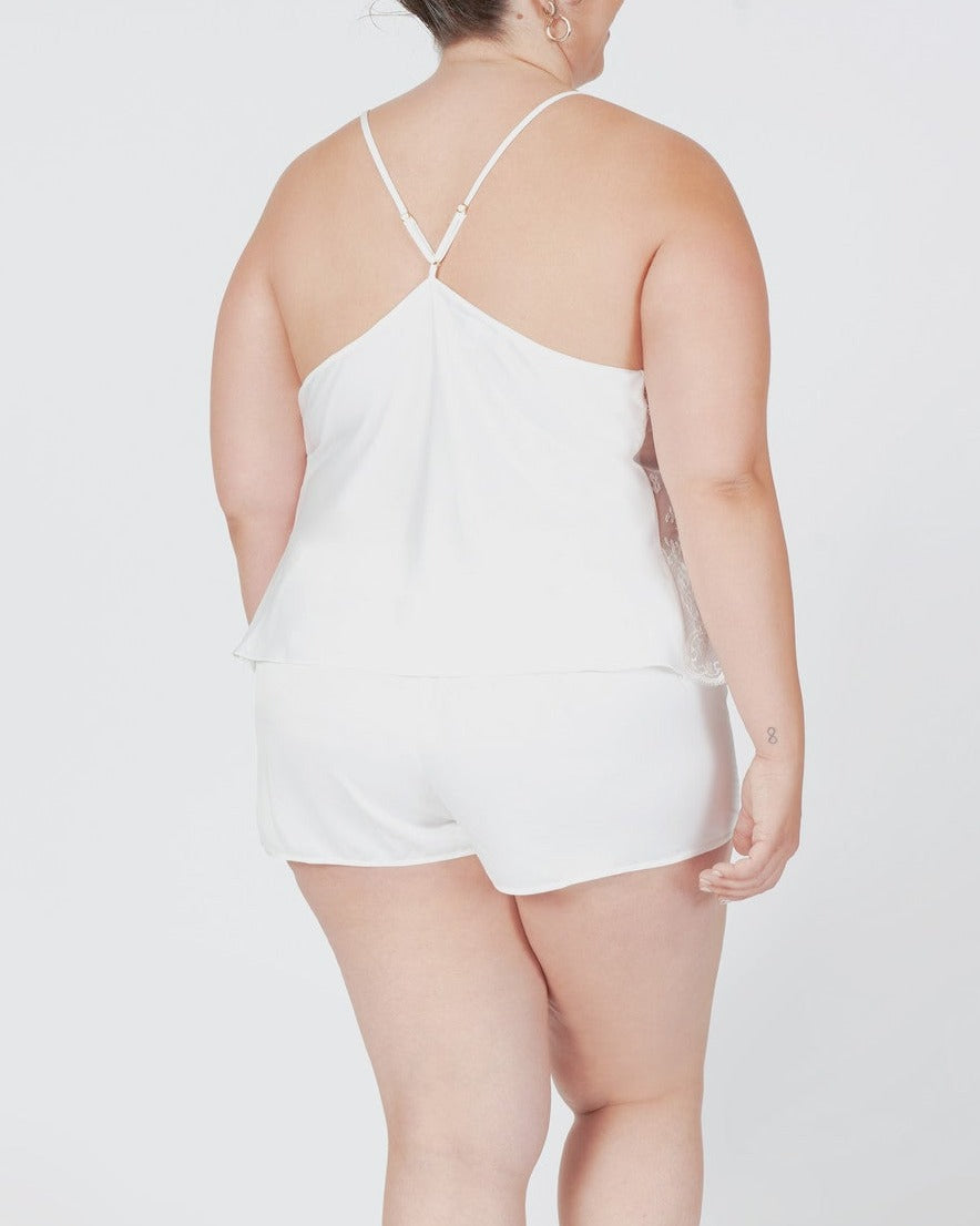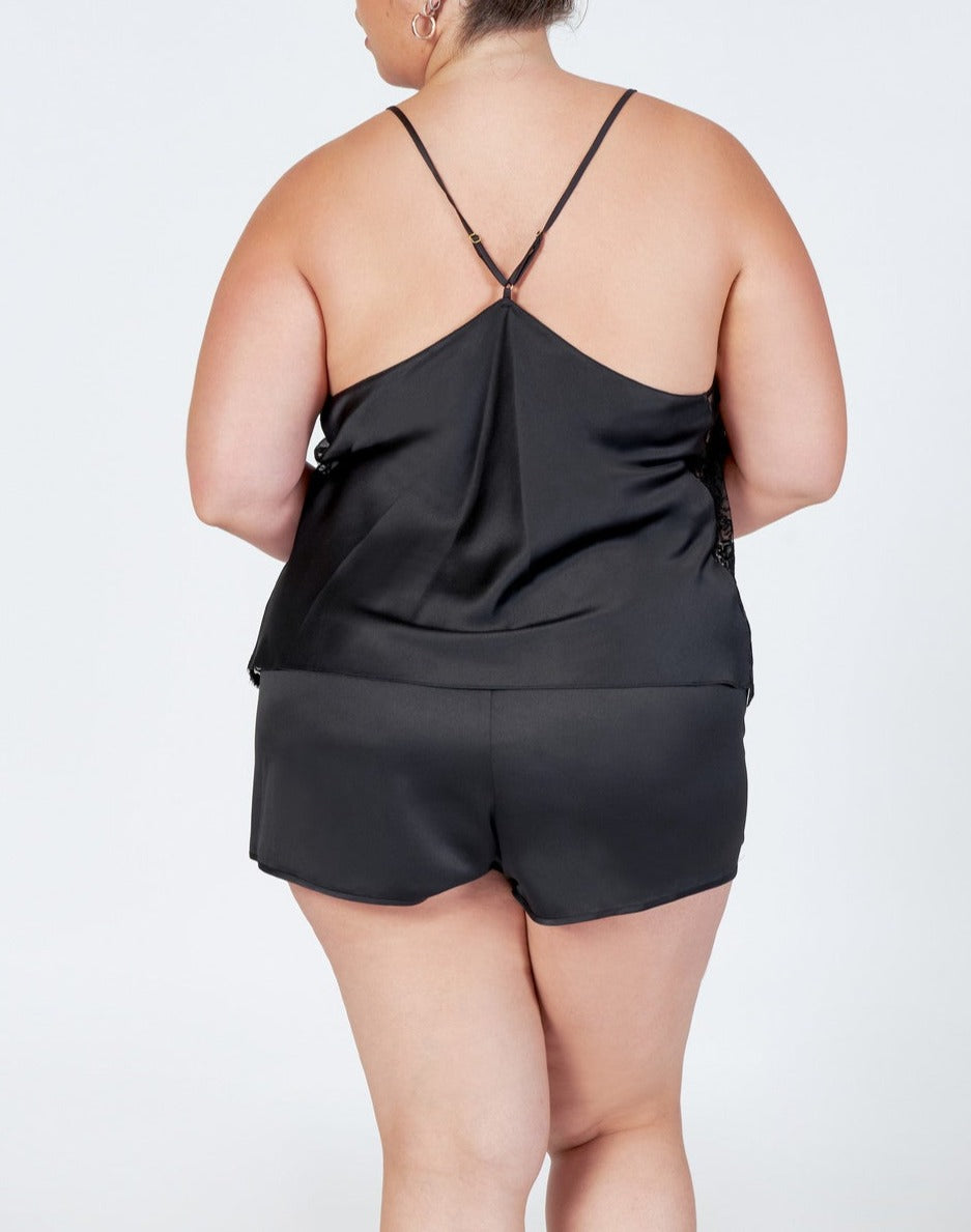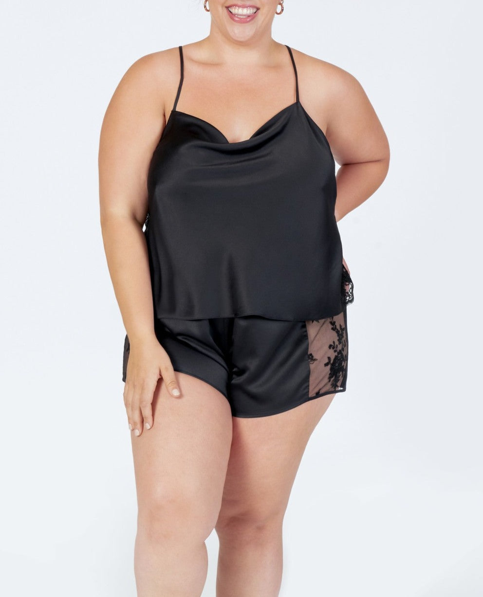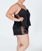 Indulge in luxurious comfort with our Darling Tap Set. This playful pajama set in a sultry black color and has a sheer lace panel, adding a touch of romance to your loungewear. The racerback straps and elastic waistband shorts provide a comfortable fit, perfect for a cozy night in.