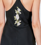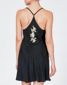 Indulge in luxury with our Magnolia Chemise. Made of vegan silk in timeless black, this fashionable piece is one of our favorites. It features the sweet southern flower, the magnolia, in beautiful embroidery on the back.