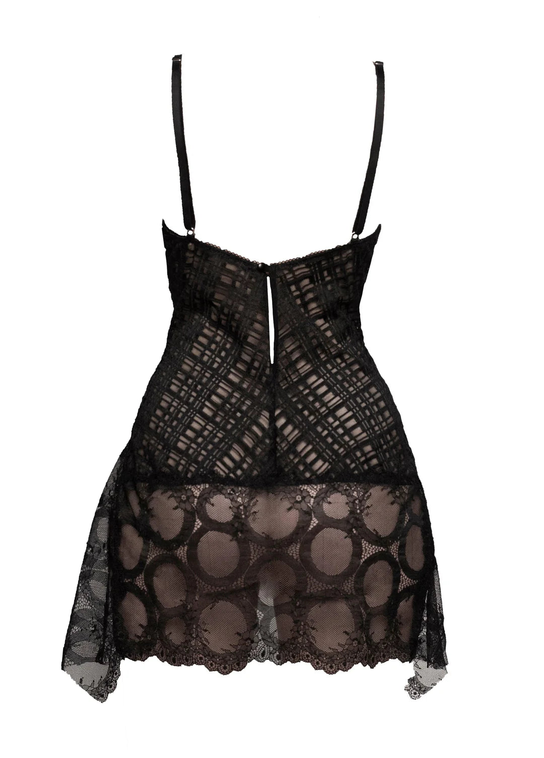 Despite its' name, this nightie is all party and no business. The stunning patchwork lace creates an eye catching nightie that is sure to impress!